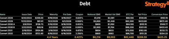 更重要的是,MSTR 不存在“爆仓风险”。即便股价被砸穿 mNAV,它的可转债要到 2028 年才到期。真正可能受影响的,只是它短期内无法继续通过增发玩“融资买币”的游戏。